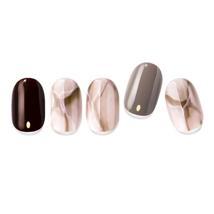 大人の気品漂うニュアンスネイル。チョコレートカラーと人気の大理石のコンビネーションはビターで大人な女性を演出します。