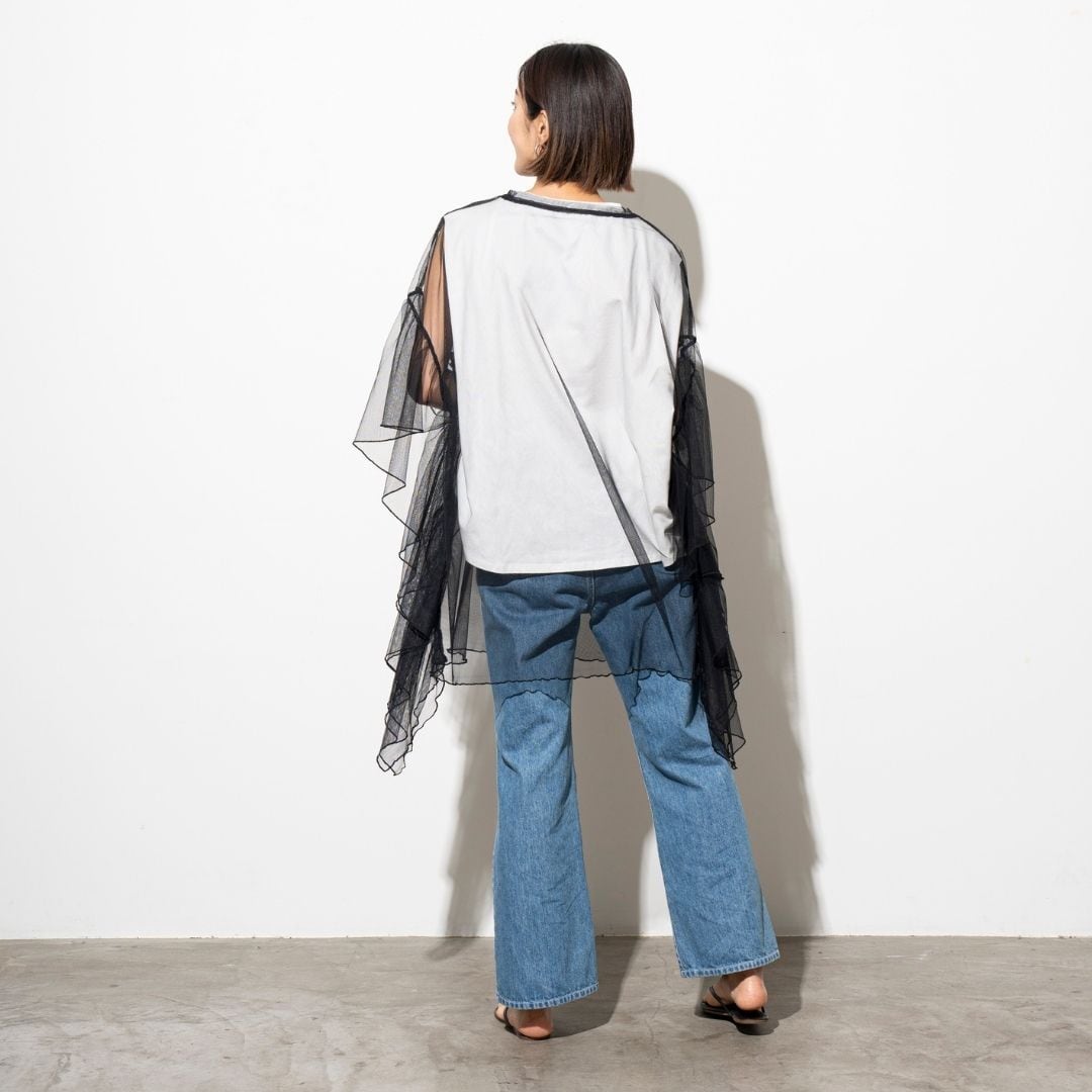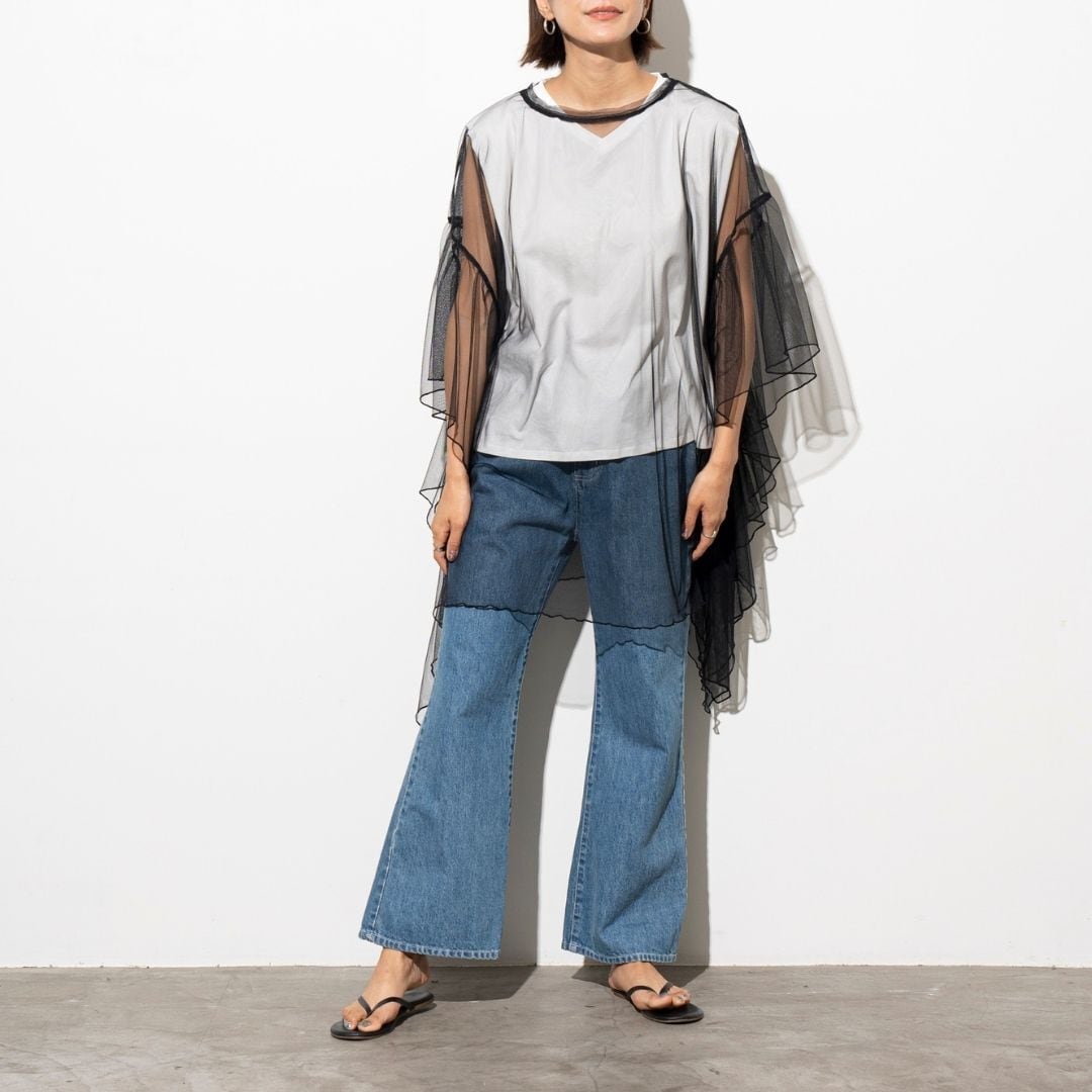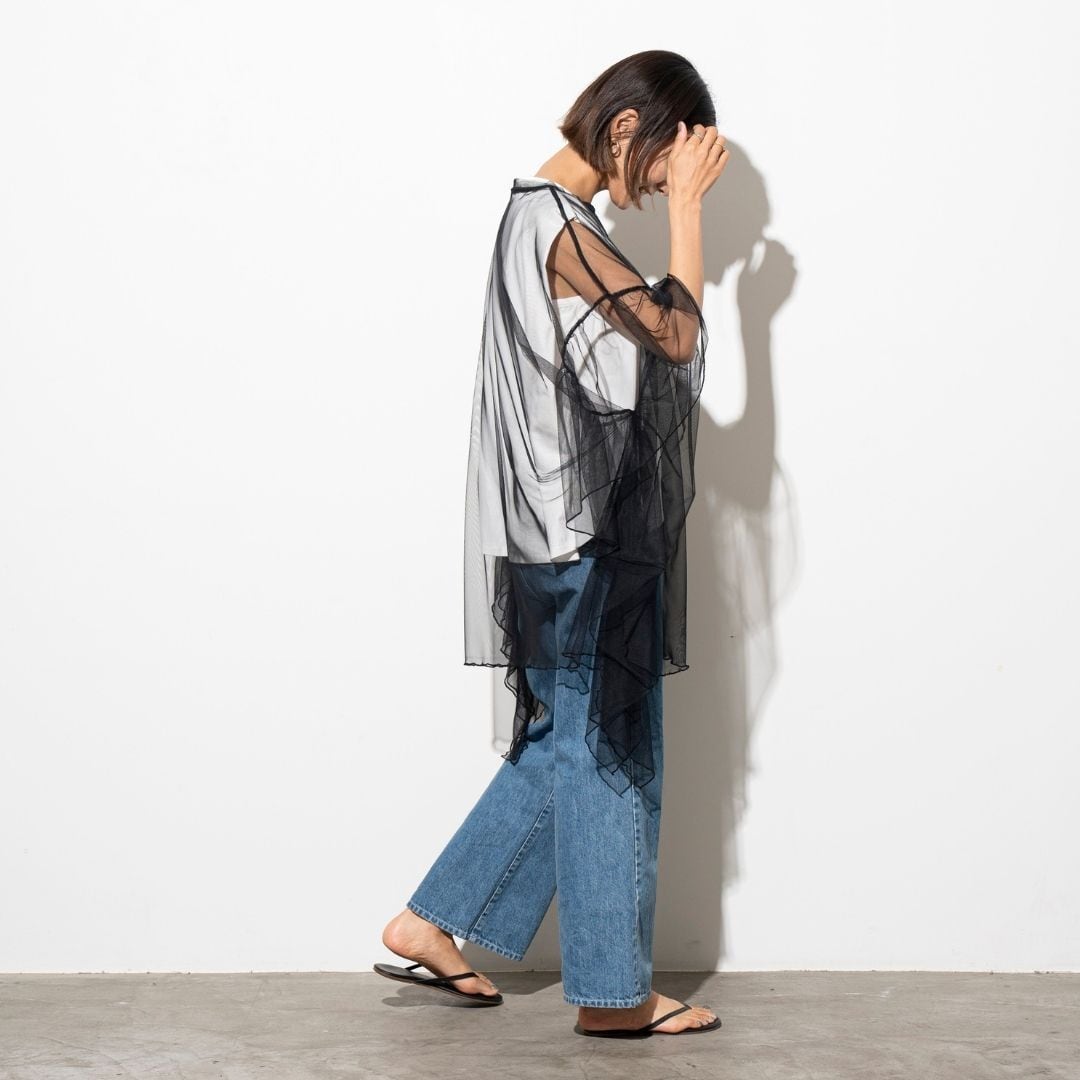 ■肌見せが苦手な方もシアートップスやTシャツをインナーに入れていただければ