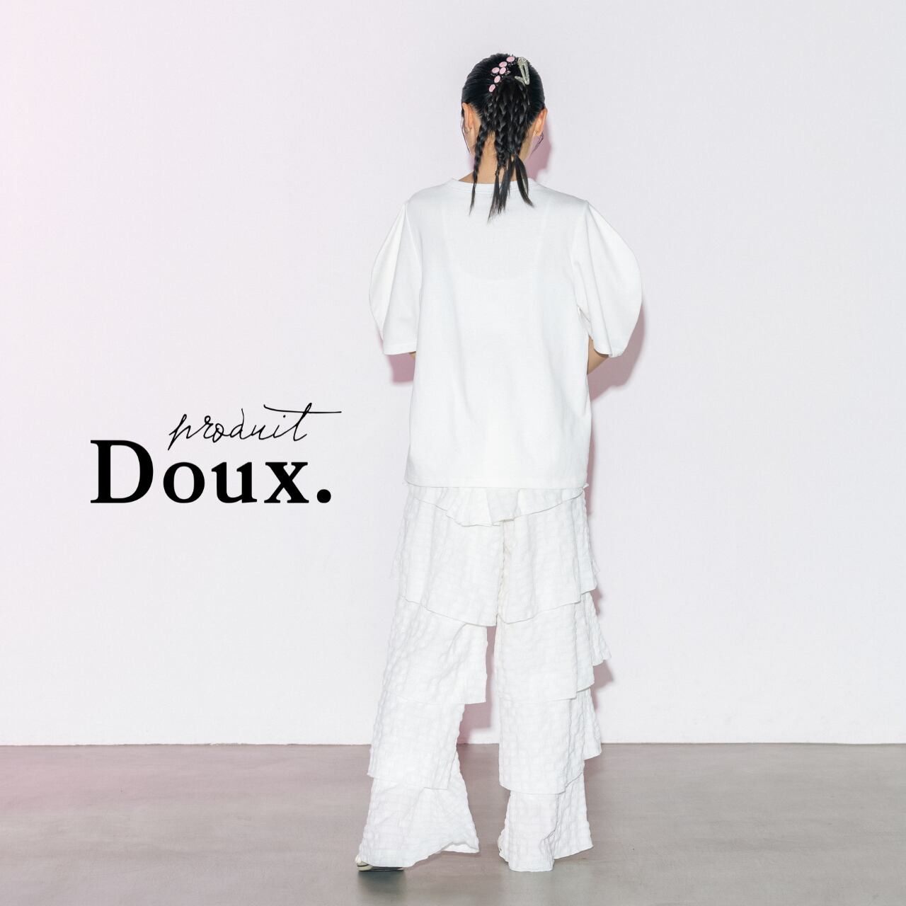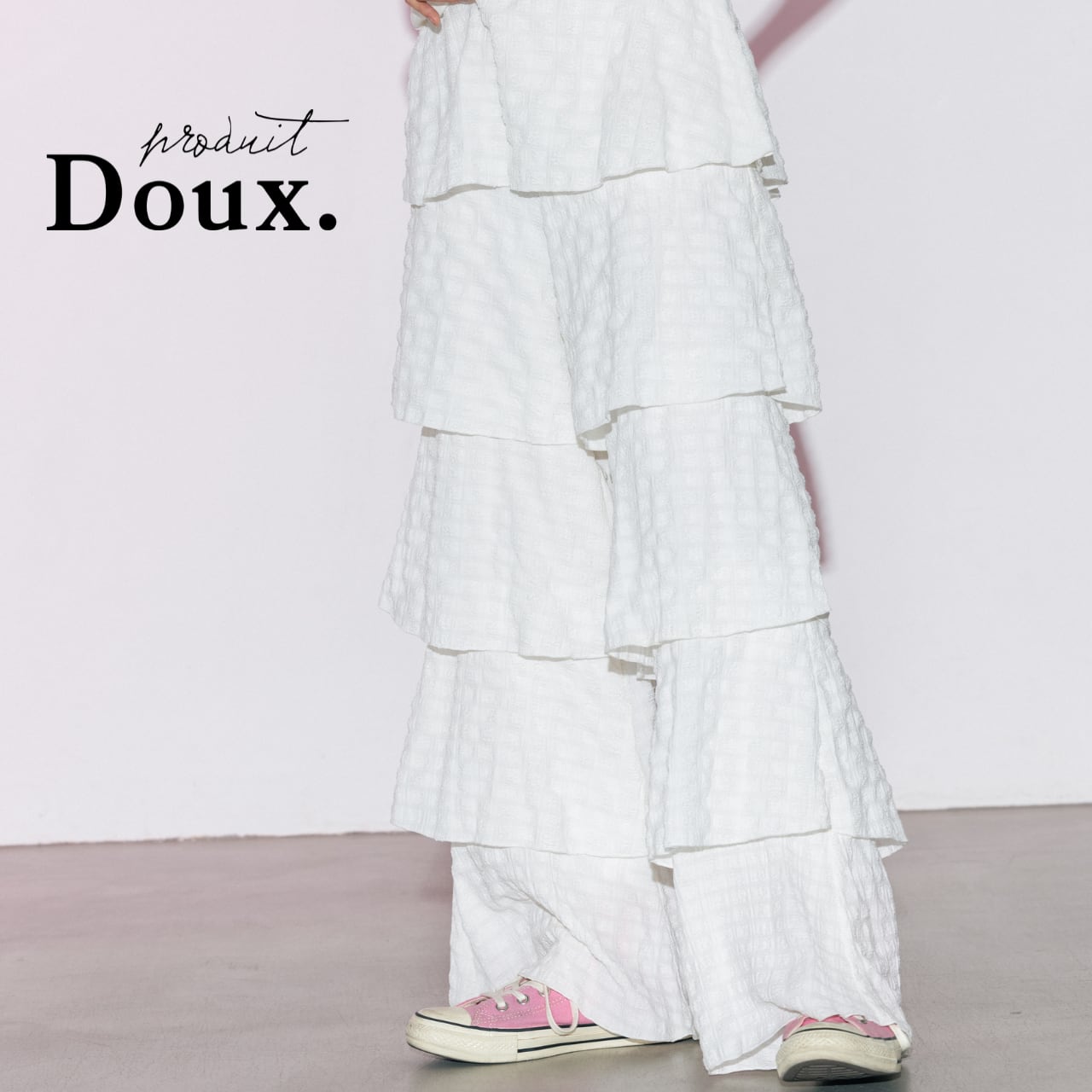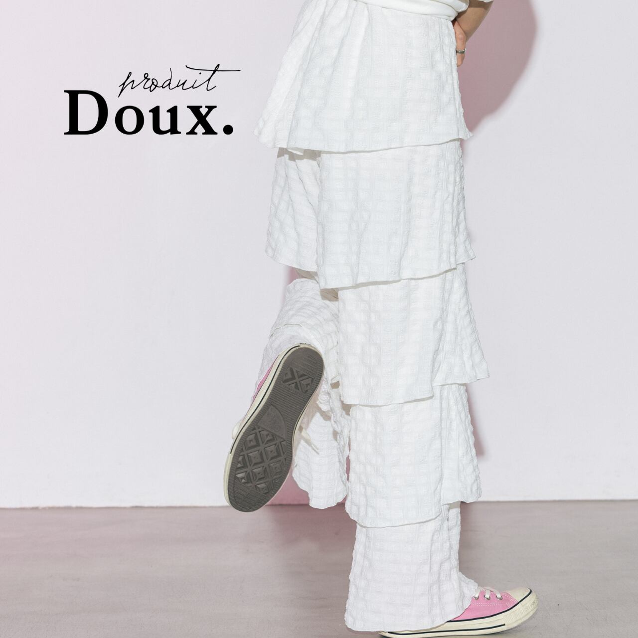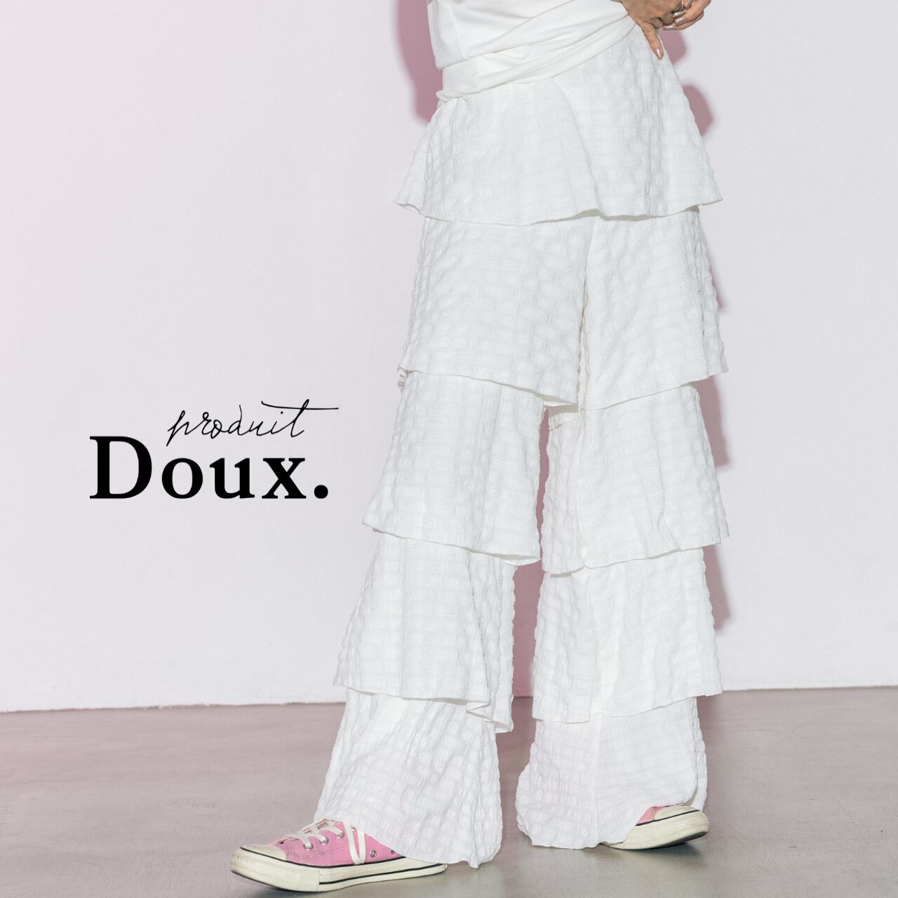 5段の柔らかなエンボス素材が特徴のティアードパンツ。