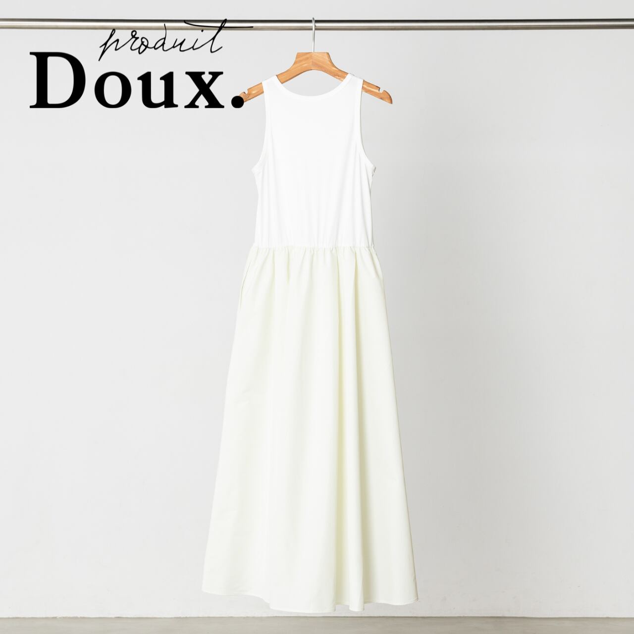 AMERICAN SLEEVE ONE PIECEは、上半身はさらりとした生地のアメリカンスリーブのタンクトップ、下はハリのある異素材スカートをドッキングしたワンピースです。