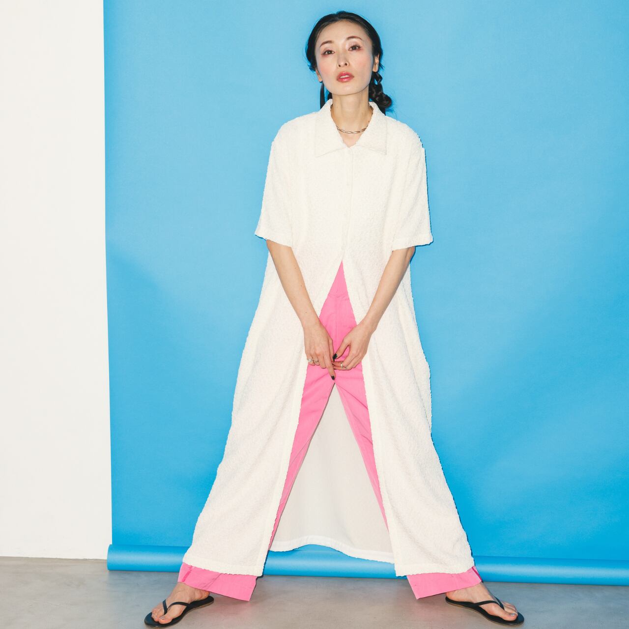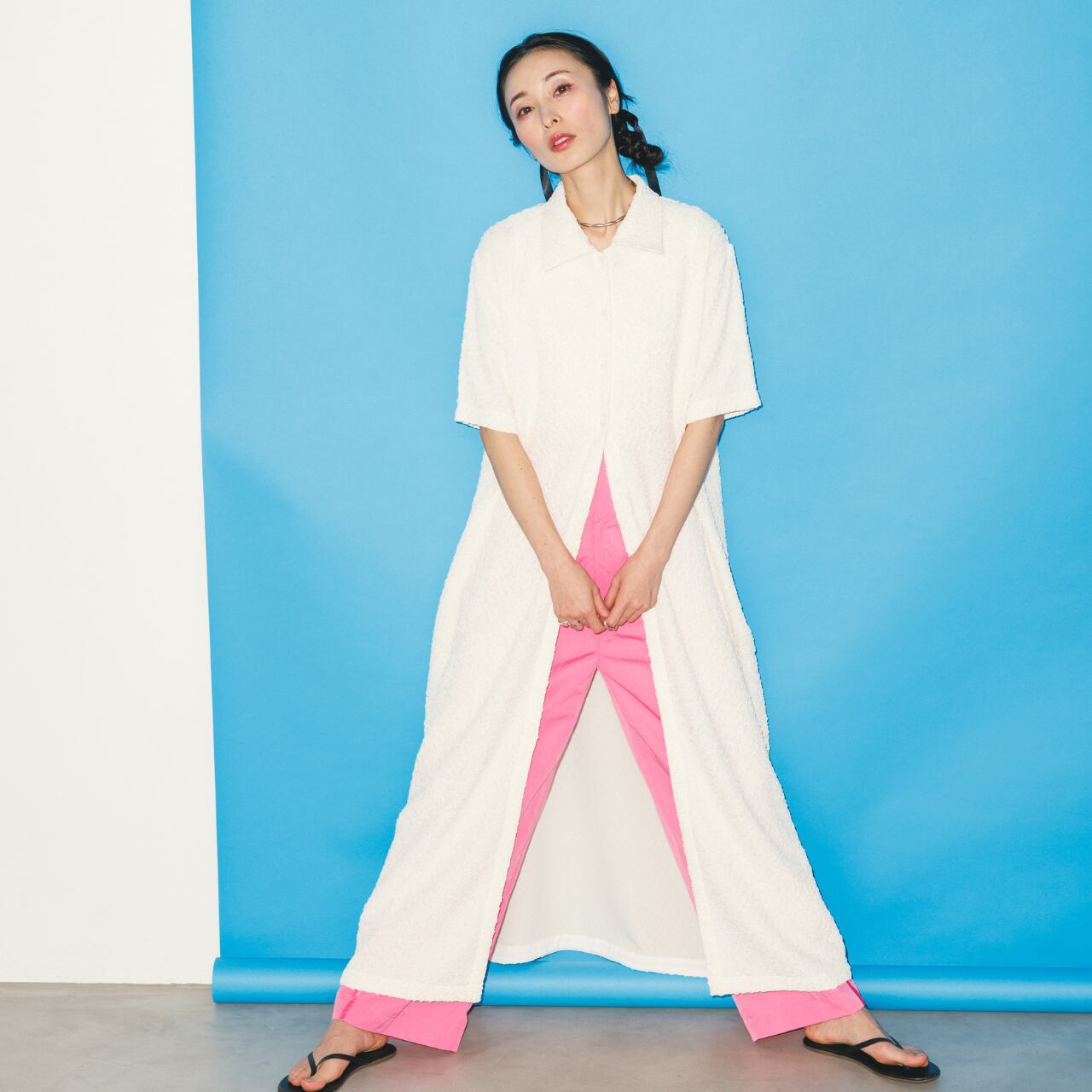 【Doux.】SHIRRING LONG SHIRT